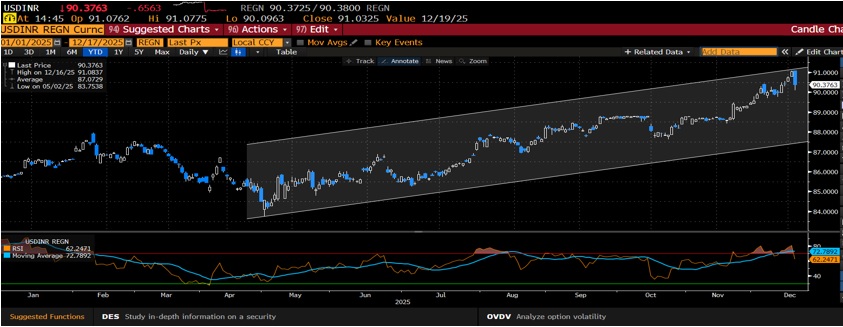 Overall, while structural pressures continue to cap a meaningful rupee recovery, proactive RBI intervention, stable domestic macro fundamentals, and a measured policy approach are expected to prevent any disorderly depreciation in the near term, keeping the currency anchored around current levels.